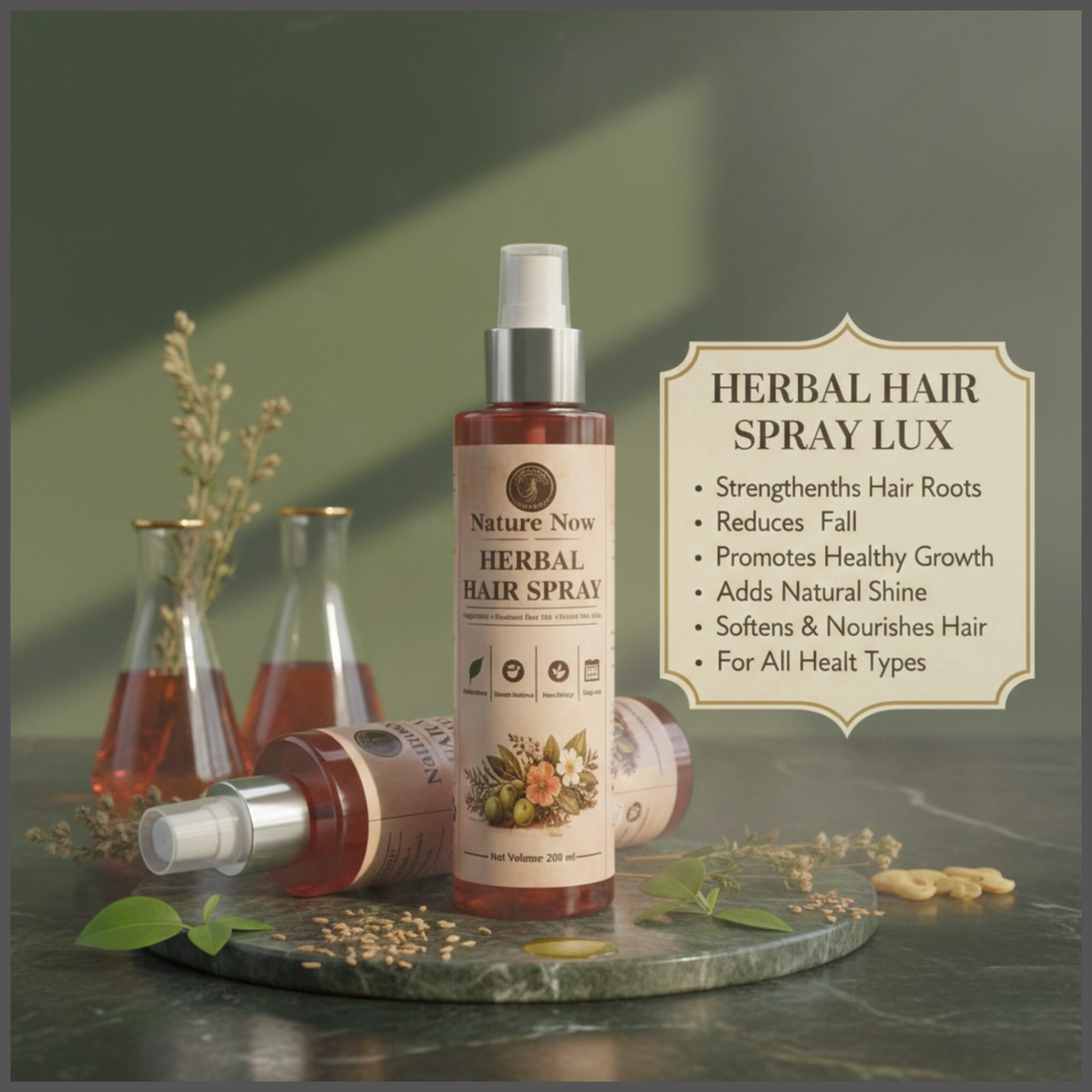 Nature Now Herbal Hair Spray is a gentle, plant-powered styling spray that provides light, flexible hold while caring for your hair. Infused with herbal goodness, it helps tame flyaways, add definition, and keep hair manageable—without stiffness or residue.